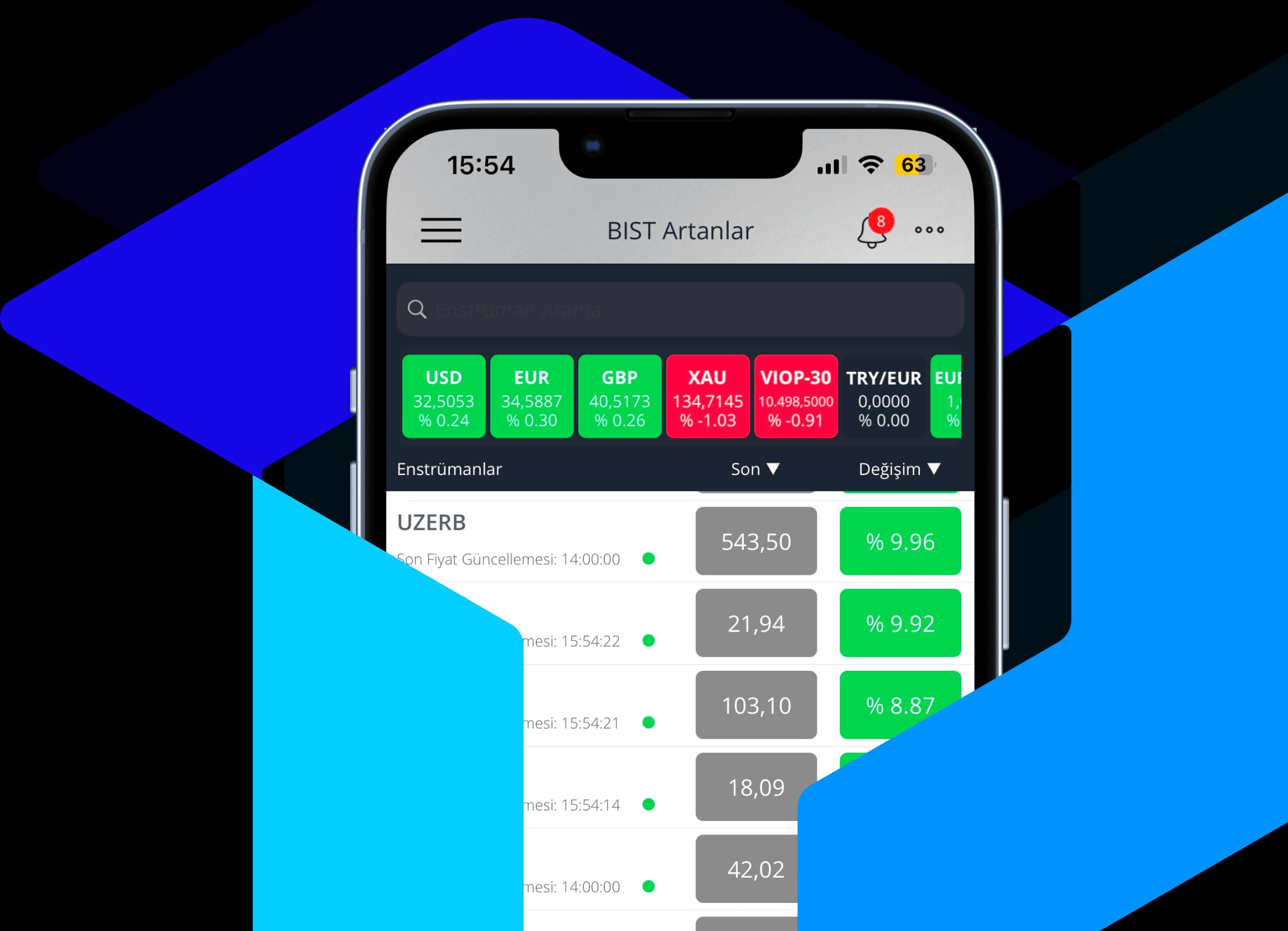 Gün içerisindeki veri akışı piyasa takip ekranımızda. En çok işlem gören hisseler ve pariteler gibi pek çok veriyi takip ederek yatırımlarınıza yön verin.
